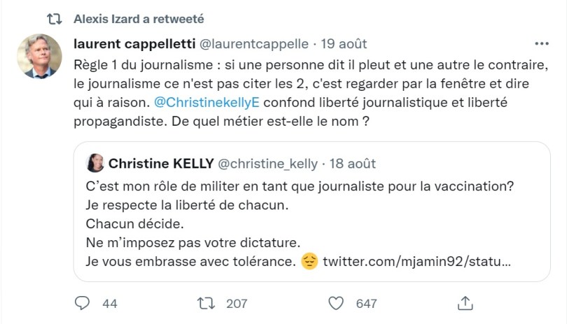 Ou encore Alexis IZARD qui vous explique le travail d’un journaliste qui devrait arbitrer la vérité.