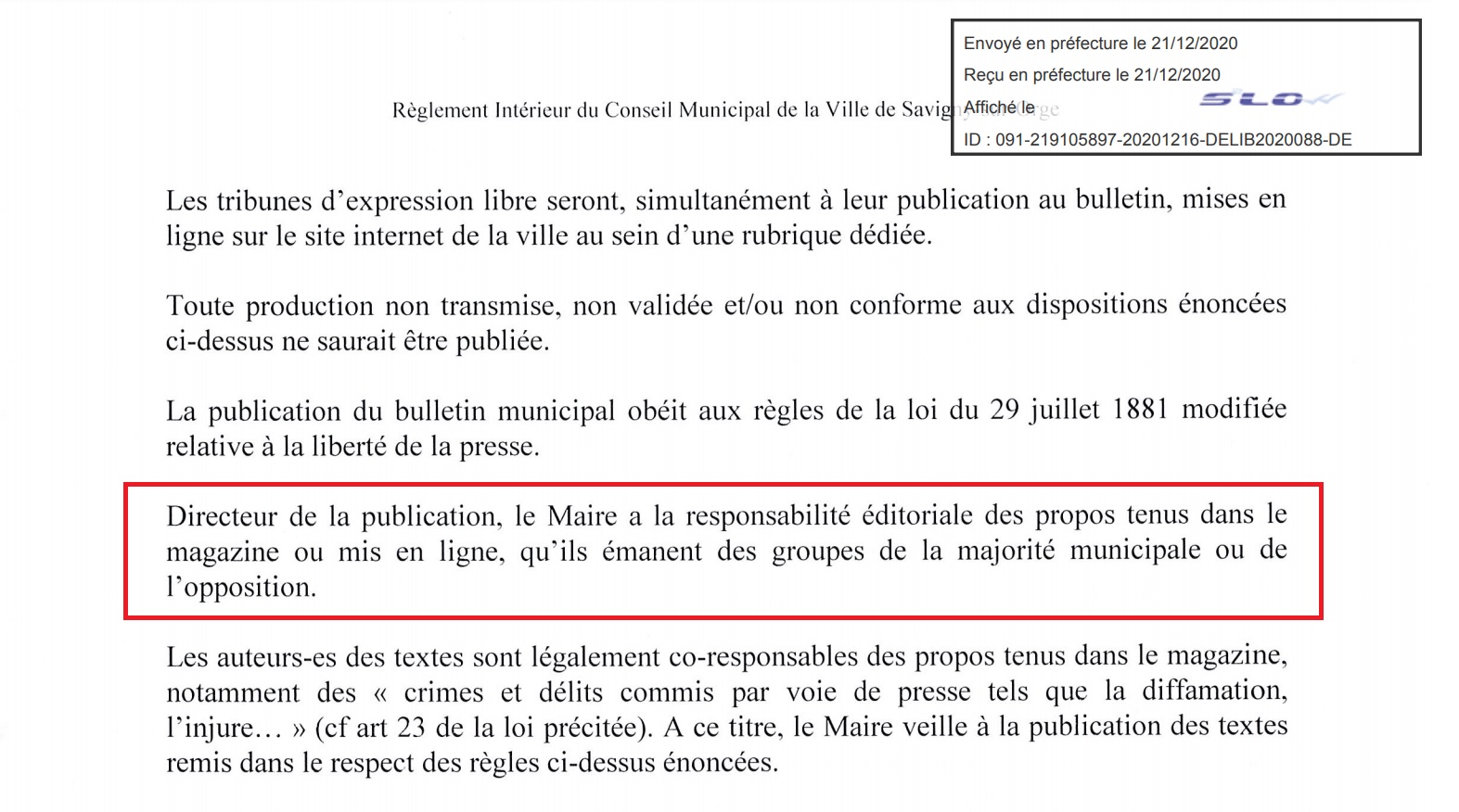 C’est pour cette raison (qu’un directeur de publication est toujours responsable) que le droit permet donc à ce même directeur de publication – maire – de refuser de publier, dans quatre cas précisément sur lesquels je ne vais pas m’étendre ici.