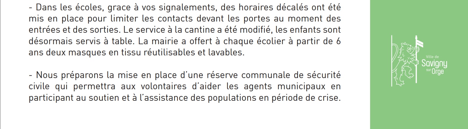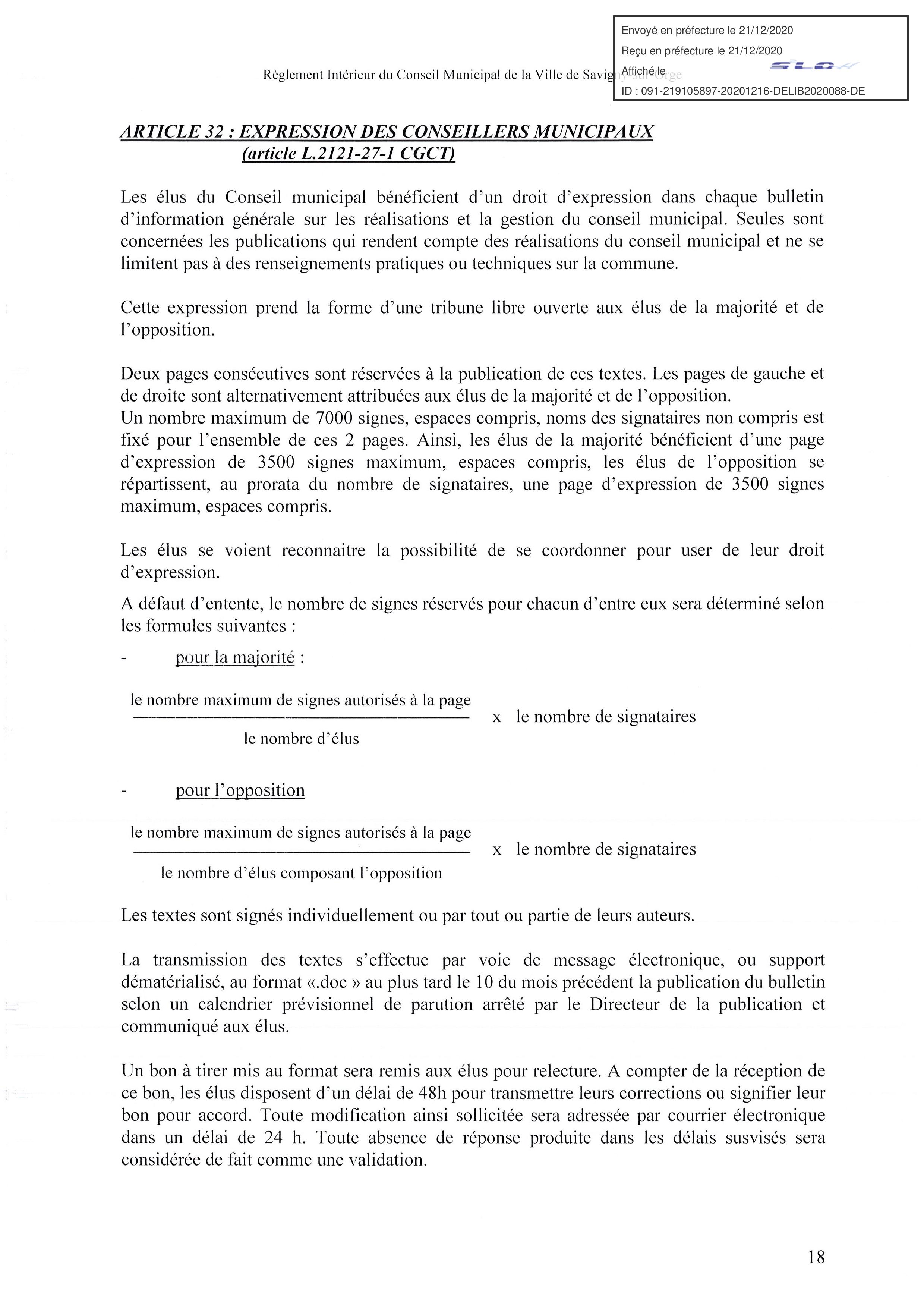 « Les élus du Conseil municipal bénéficient d’un droit d’expression dans chaque bulletin d’information générale sur les réalisations et la gestion du Conseil municipal. Seules sont concernées les publications qui rendent compte des réalisations du Conseil municipal et ne se limitent pas à des renseignements pratiques ou techniques. »