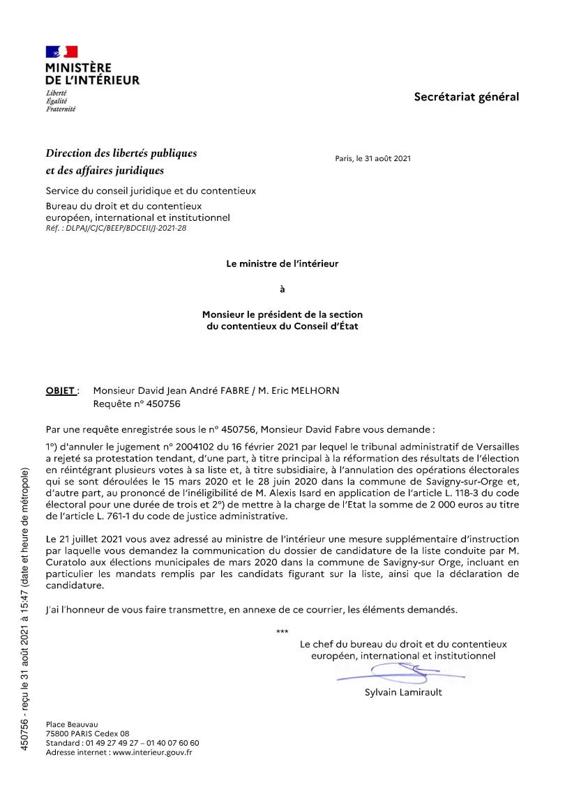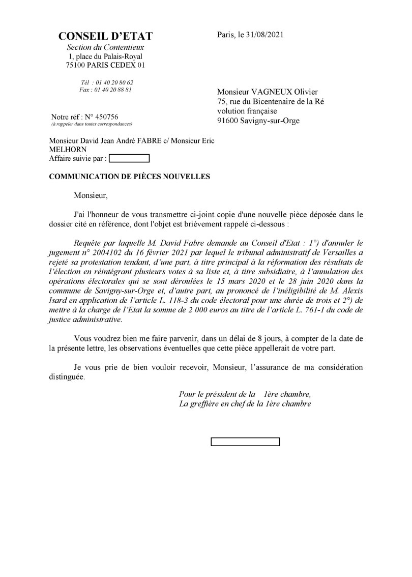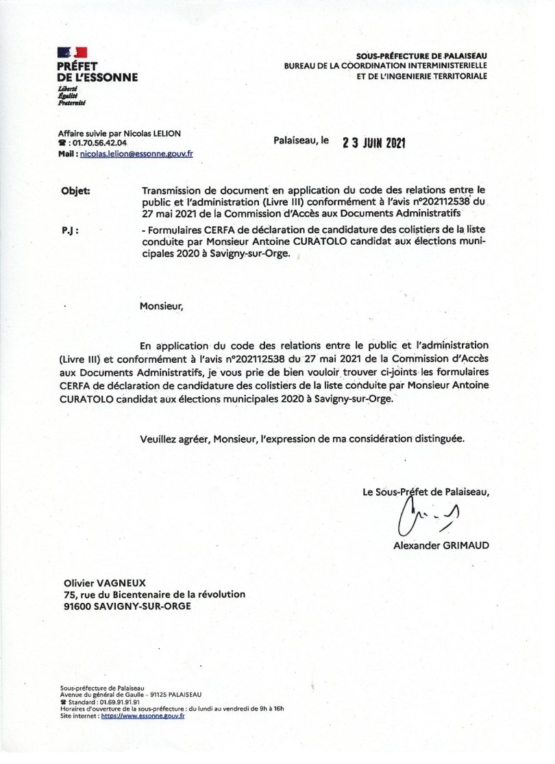 Annulation des municipales 2020 à Savigny-sur-Orge : le ministère de l’Intérieur confirme l’authenticité des documents produits par Olivier VAGNEUX