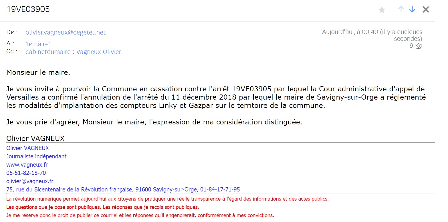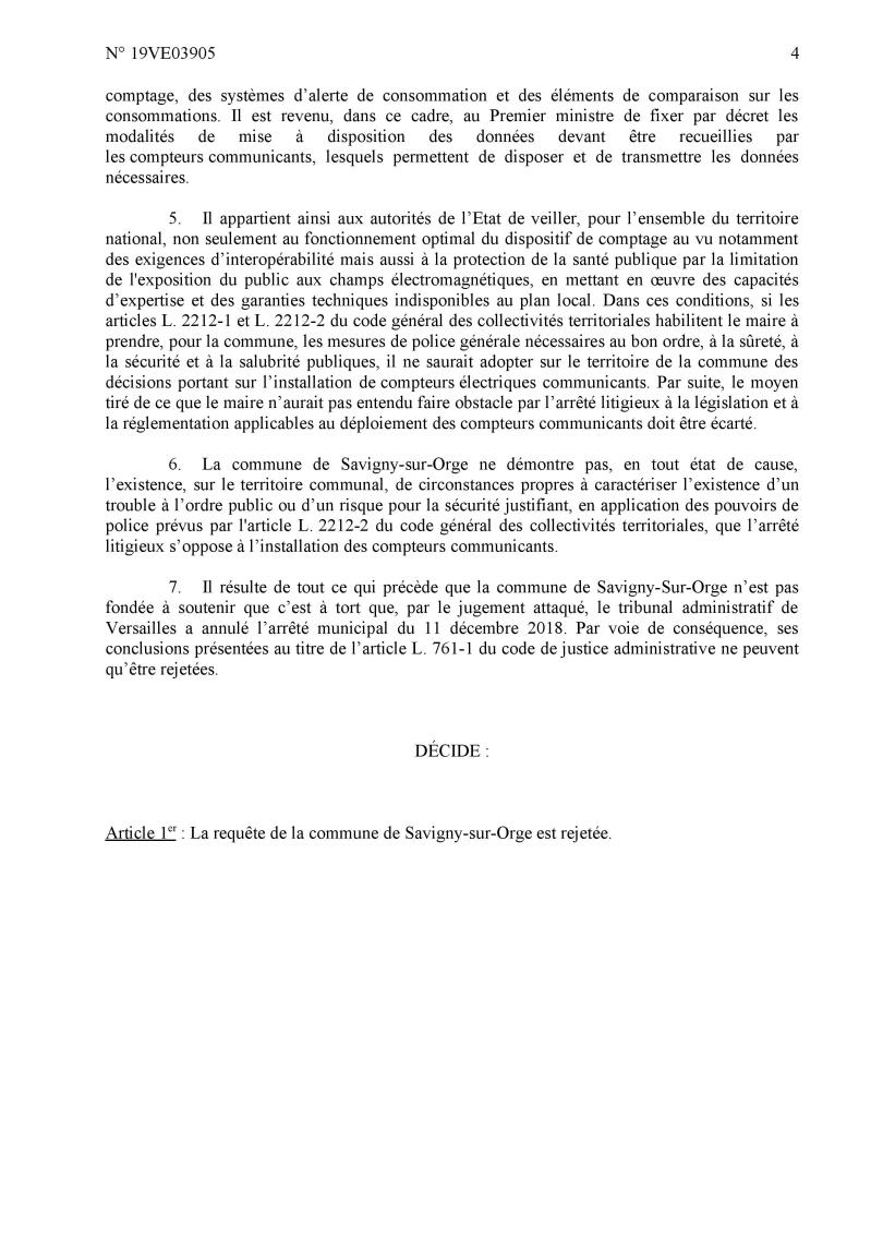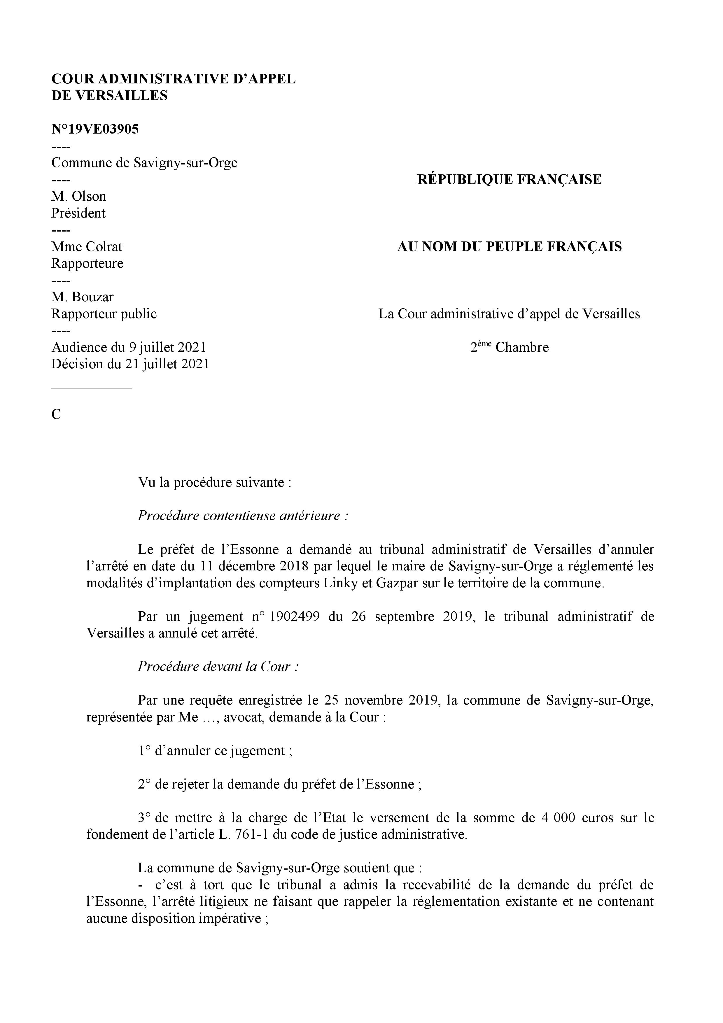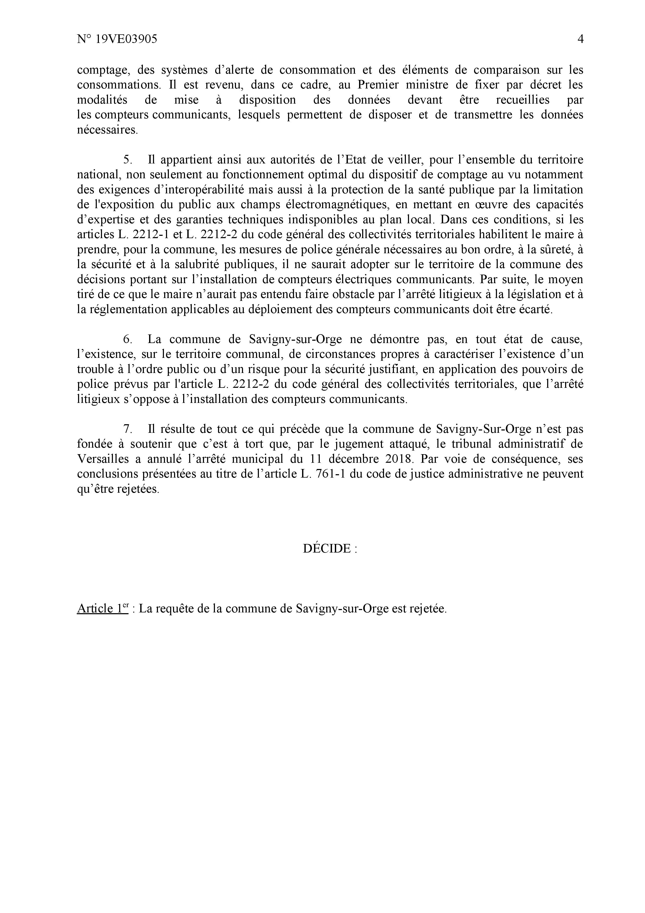 La première chose qui me frappe, tout de suite, est que l’arrêt n’est pas signé, au mépris de l’article R. 741-8 du code de Justice administrative. C’est un moyen de cassation mais j’imagine que Jean-Marc DEFRÉMONT, qui n’est écolo sur l’étiquette, se contrefout de Linky et ne va pas se pourvoir en cassation.