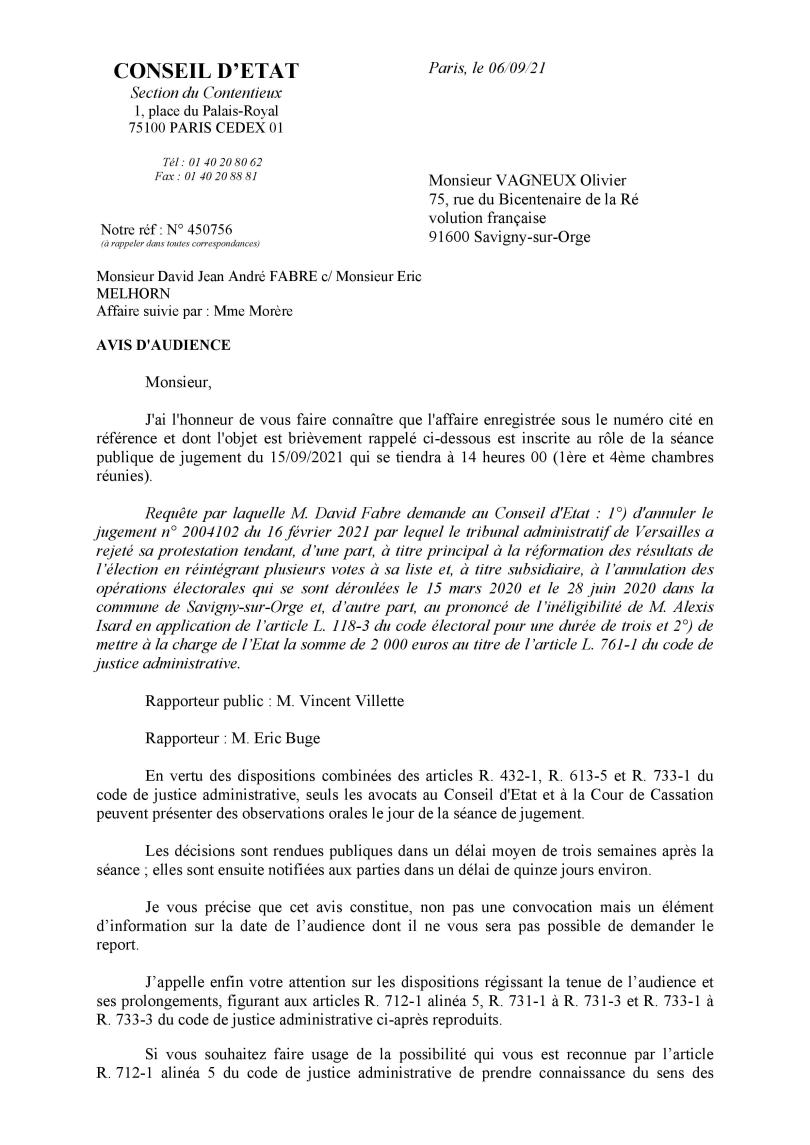 Nous connaîtrons d’abord le sens des conclusions du rapporteur public (le magistrat chargé de traiter la question de droit sous tous les angles) le lundi 13 septembre.