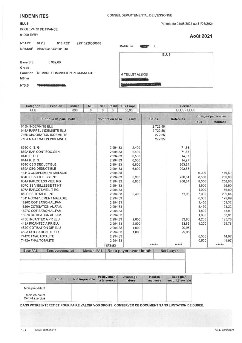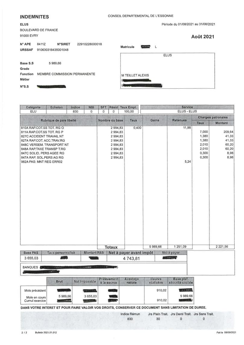TEILLET est soumis et dépendant. Il doit tout à son parti, comme déjà ce poste de chargé de mission au Département, qui est en fait moins rémunéré que je ne le pensais. Par contre, il touche quasiment le double de ce qui est autorisé à la commission permanente du Département !