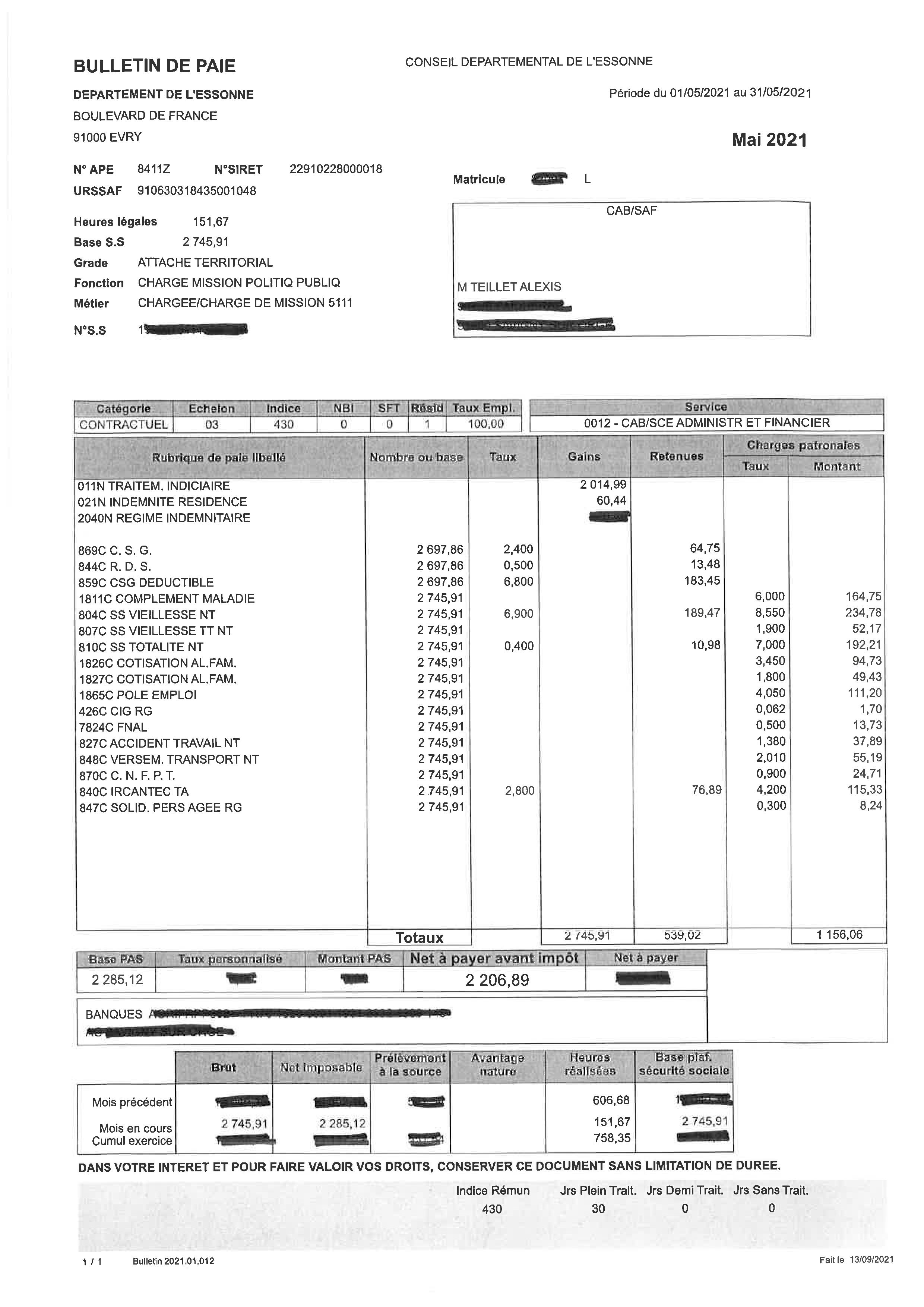 TEILLET est soumis et dépendant. Il doit tout à son parti, comme déjà ce poste de chargé de mission au Département, qui est en fait moins rémunéré que je ne le pensais. Par contre, il touche quasiment le double de ce qui est autorisé à la commission permanente du Département !