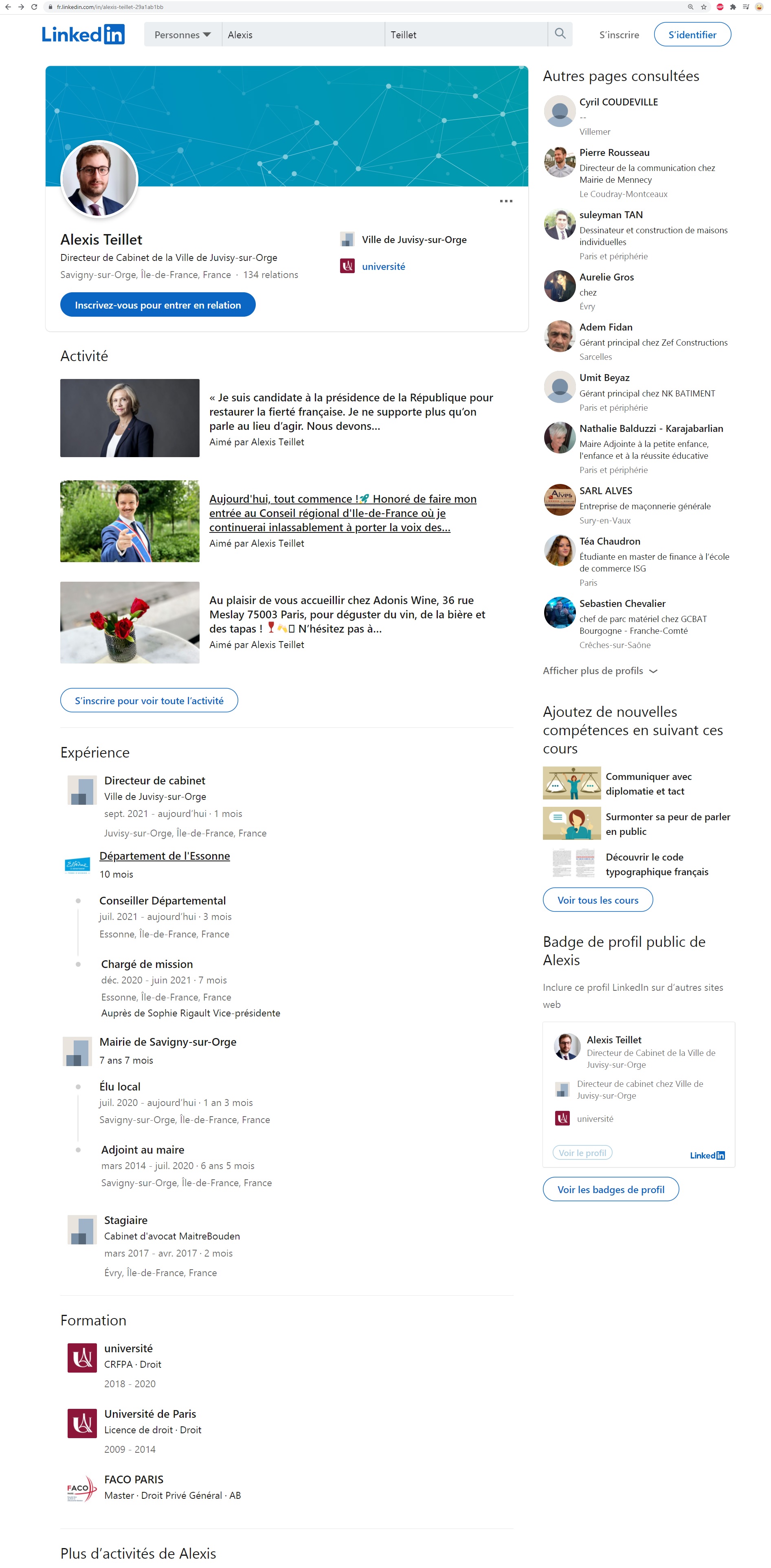 Après, en même temps, si justement le droit intéressait réellement Alexis TEILLET, je pense qu’il aurait daigné participer à l’annulation de l’élection municipale 2020, sinon agir contre les excès de pouvoir inconstitutionnels du maire de Savigny qui impose le passe sanitaire là où la loi ne le prévoit pas…