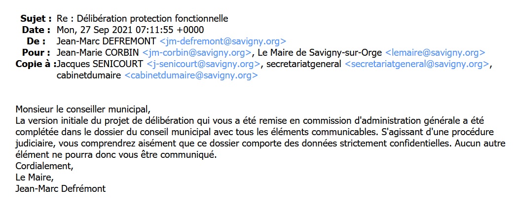 Voilà précisément ce que l’ex-maire de Savigny-sur-Orge a dit lors du Conseil municipal du jeudi 30 septembre 2021 pour justifier le retrait de la délibération (source vidéo du Conseil municipal) :