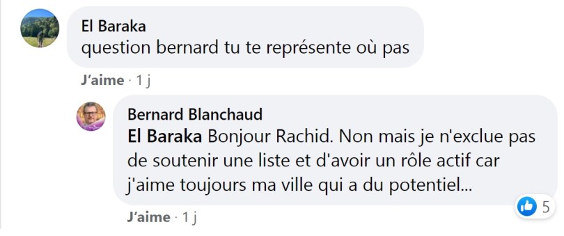 Je me rappelle d’ailleurs d’une époque où Bernard m’avait invité chez lui pour participer à sa grande liste d’union. À cette époque (fin 2018), il éprouvait encore de l’amitié pour moi et exprimait une reconnaissance, sinon une solidarité, pour mon action municipale.