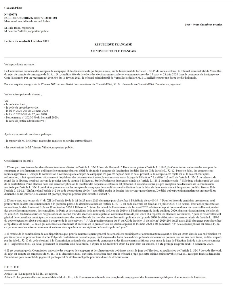 J’ai malgré tout adressé samedi 2 octobre 2021 la proposition à Bernard, fort de ses compétences professionnelles, de devenir mon mandataire financier pour cette nouvelle campagne.