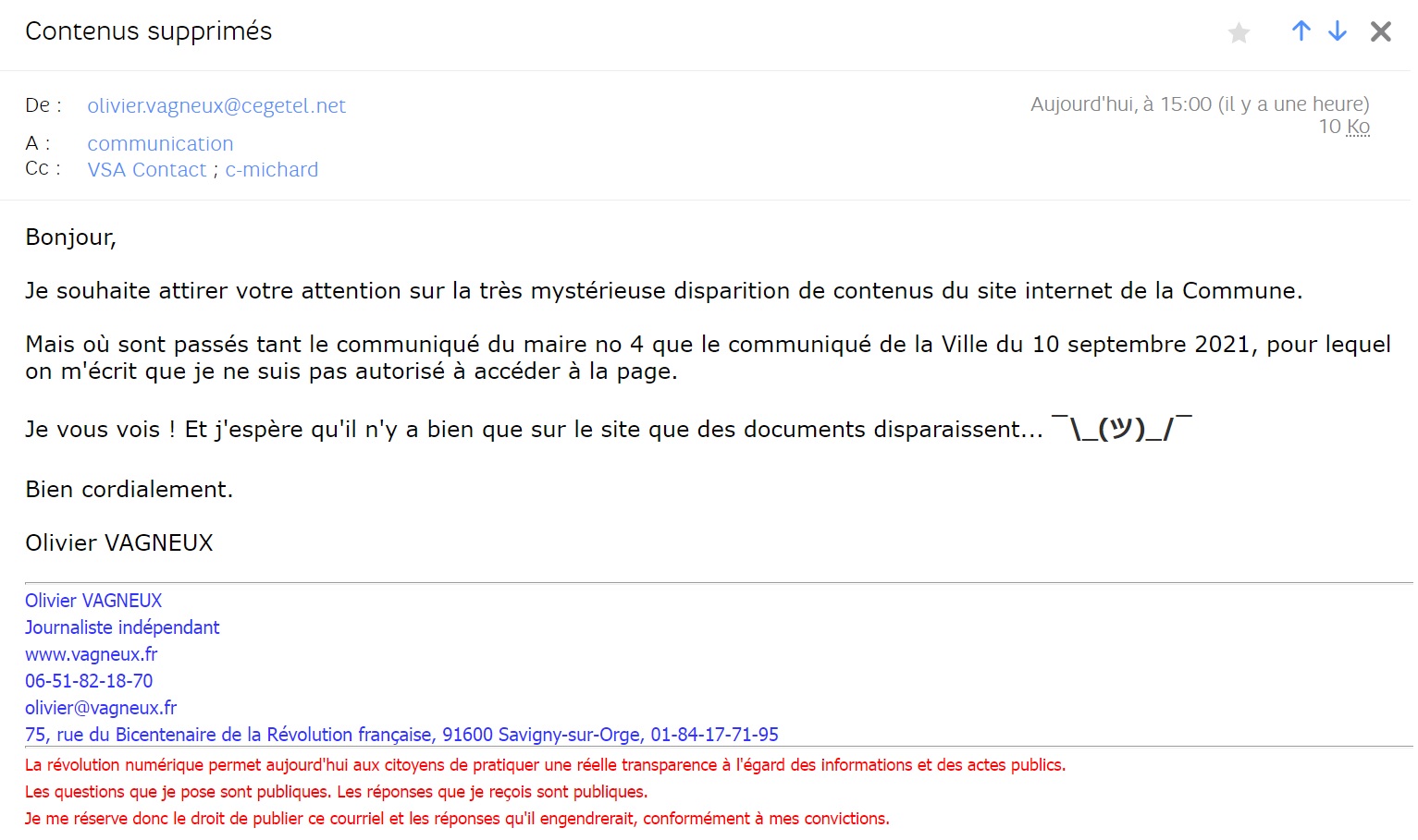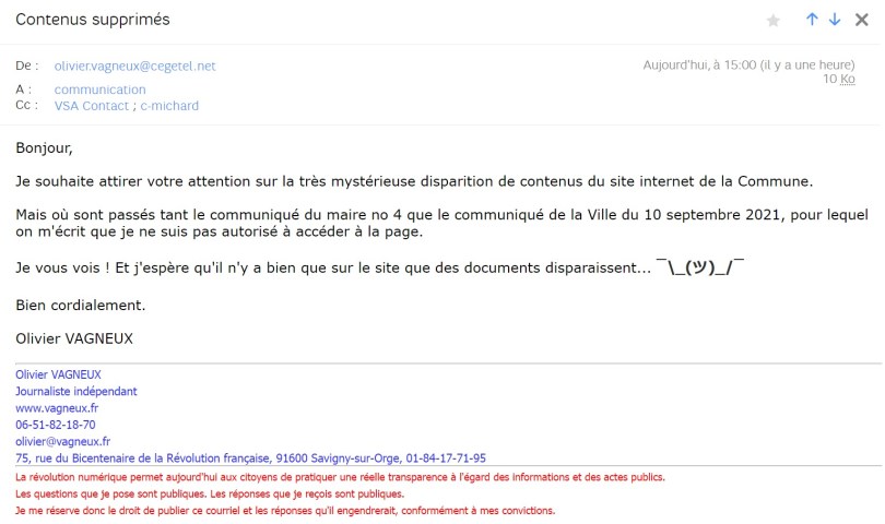 Au fait, si jamais vous retrouvez le communiqué du maire numéro 4 sur le site internet de la Commune…