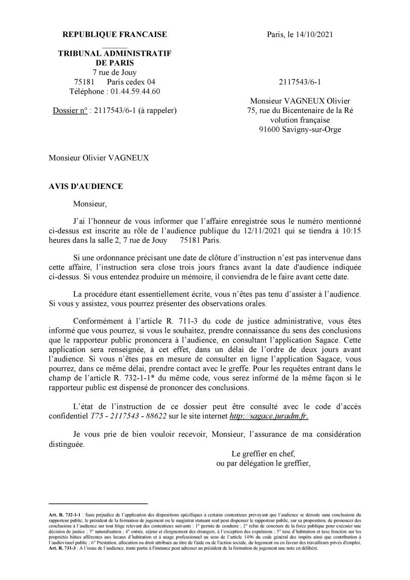 J‘attends maintenant impatiemment la suite. Déjà l’audience du 12 novembre !