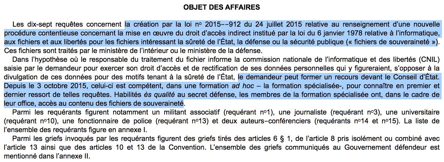 En mai 2021, la Cour européenne des droits de l’Homme a d’ailleurs mis en cause la France par rapport à son contrôle des fichiers secrets. Voici comment elle définit les fichiers de souveraineté : des « fichiers intéressant la sûreté de l’État, la défense ou la sécurité publique ».