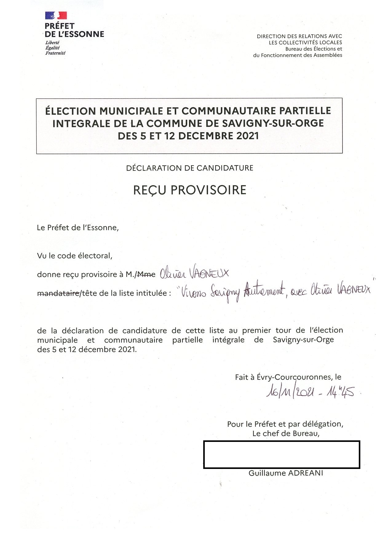Dans l’attente du reçu définitif qui confirmera notre participation au scrutin du 5 décembre, rendez-vous maintenant jeudi soir pour le tirage au sort des emplacements d’affichage !