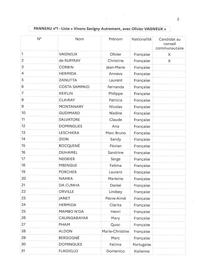 Une fois n’est pas coutume, la liste « Vivons Savigny Autrement, avec Olivier VAGNEUX » se distingue, en tant qu’elle est la seule à ne pas être allé piquer de candidats sur d’autres listes pour se constituer.