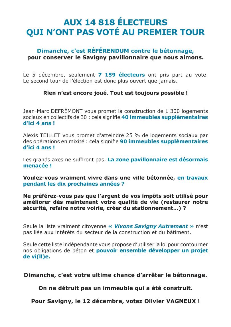 Dimanche, faites le choix de vos convictions pour préserver le Savigny que vous aimez.