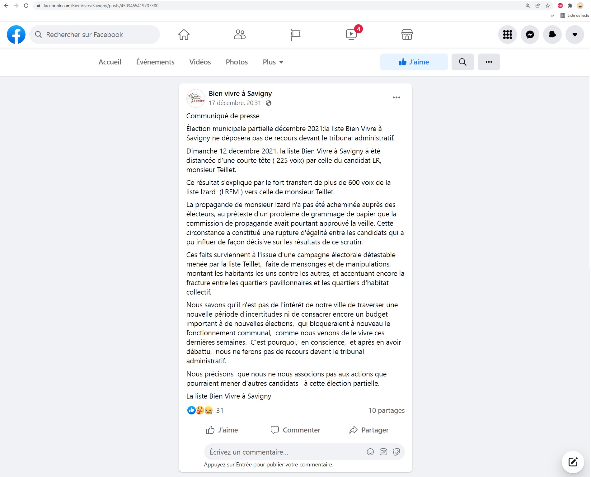 La gauche ayant renoncé à déposer sa propre protestation, c’est certainement qu’elle ne tenait pas tant que cela à défendre son bilan de 15 mois et ses convictions, auxquels elle ne devait pas tant croire que cela ; et finalement qu’elle doit être satisfaite que la Commune soit repassée à droite.