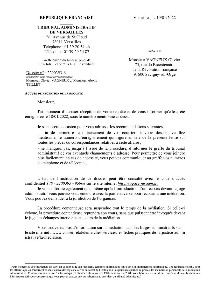 • La présidente du Tribunal administratif demande encore à Alexis TEILLET d’exécuter un jugement, ce qu’il aurait dû faire il y a plus de quatre mois…