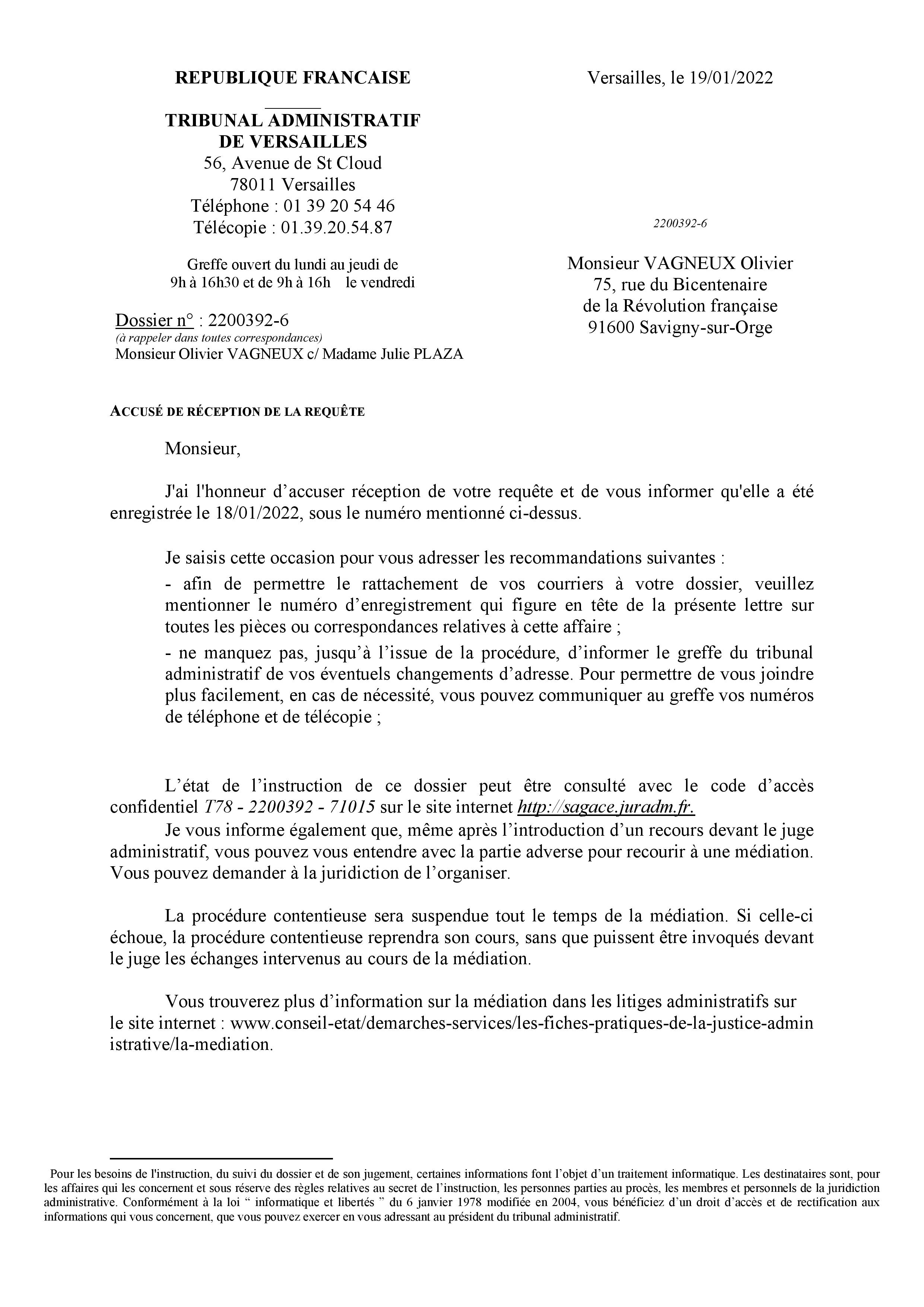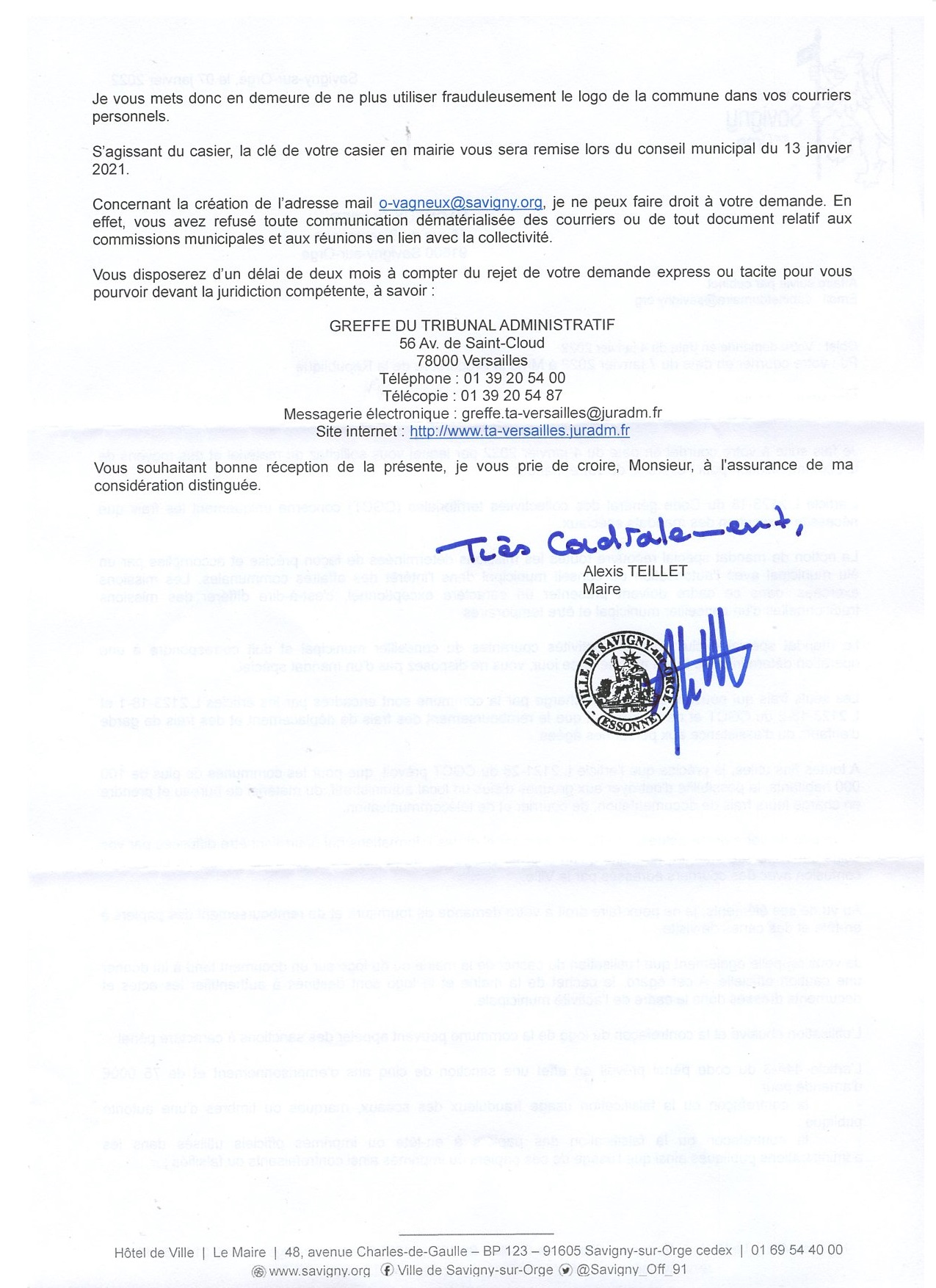 • La présidente du Tribunal administratif demande encore à Alexis TEILLET d’exécuter un jugement, ce qu’il aurait dû faire il y a plus de quatre mois…