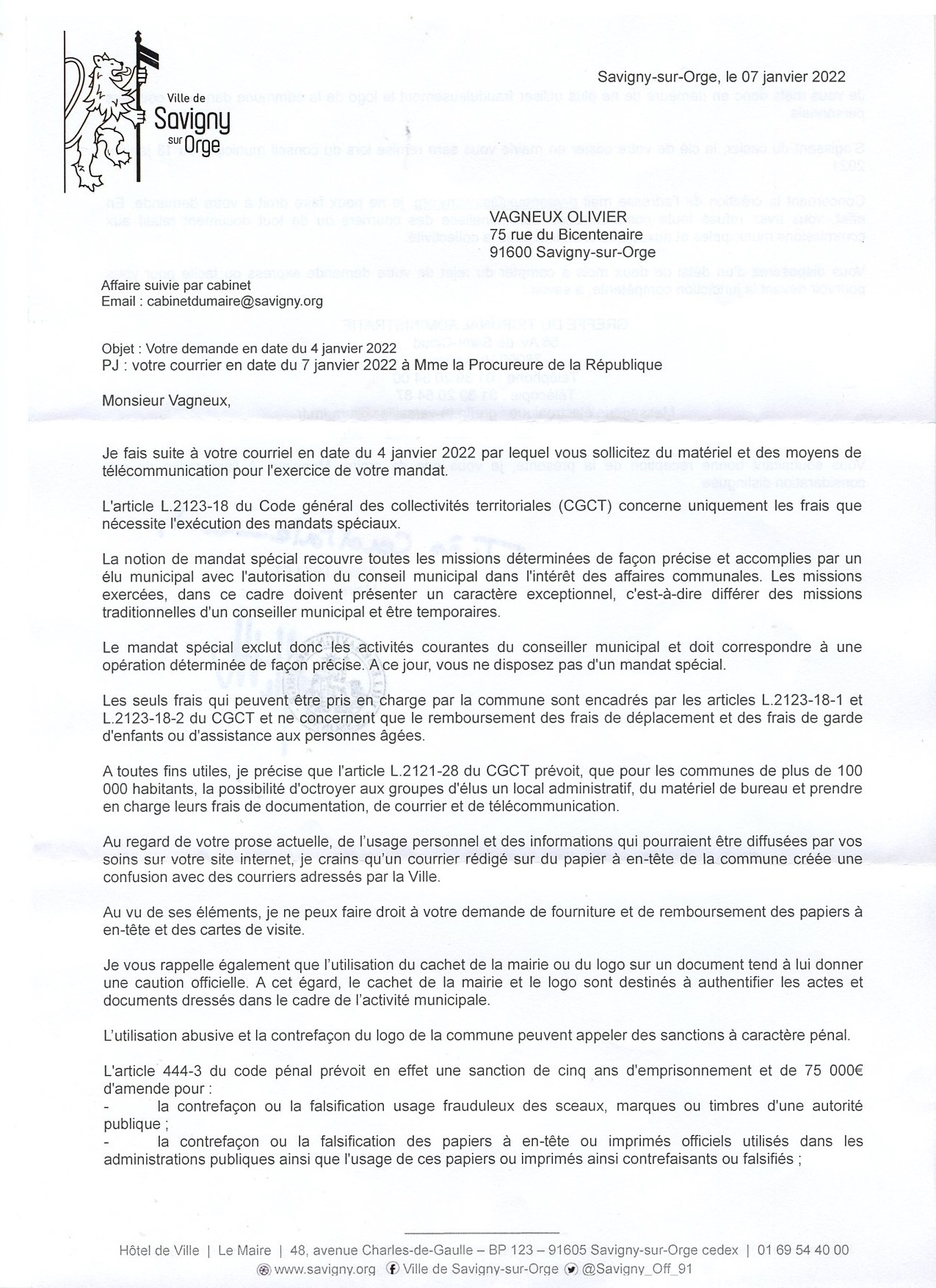 Alexis TEILLET nous met en demeure de cesser d’utiliser le logo de la Commune. Heureusement qu’il ne sait pas encore que je l’utilise même dans mes recours administratifs !
