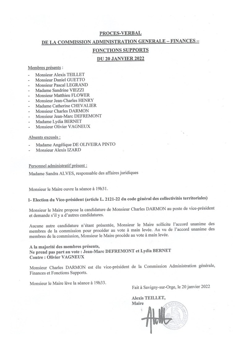 1°) Sur le procès-verbal de la commission de l’administration générale :