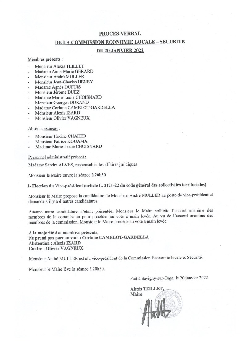 2° Sur le procès-verbal de la commission Économie locale et Sécurité :