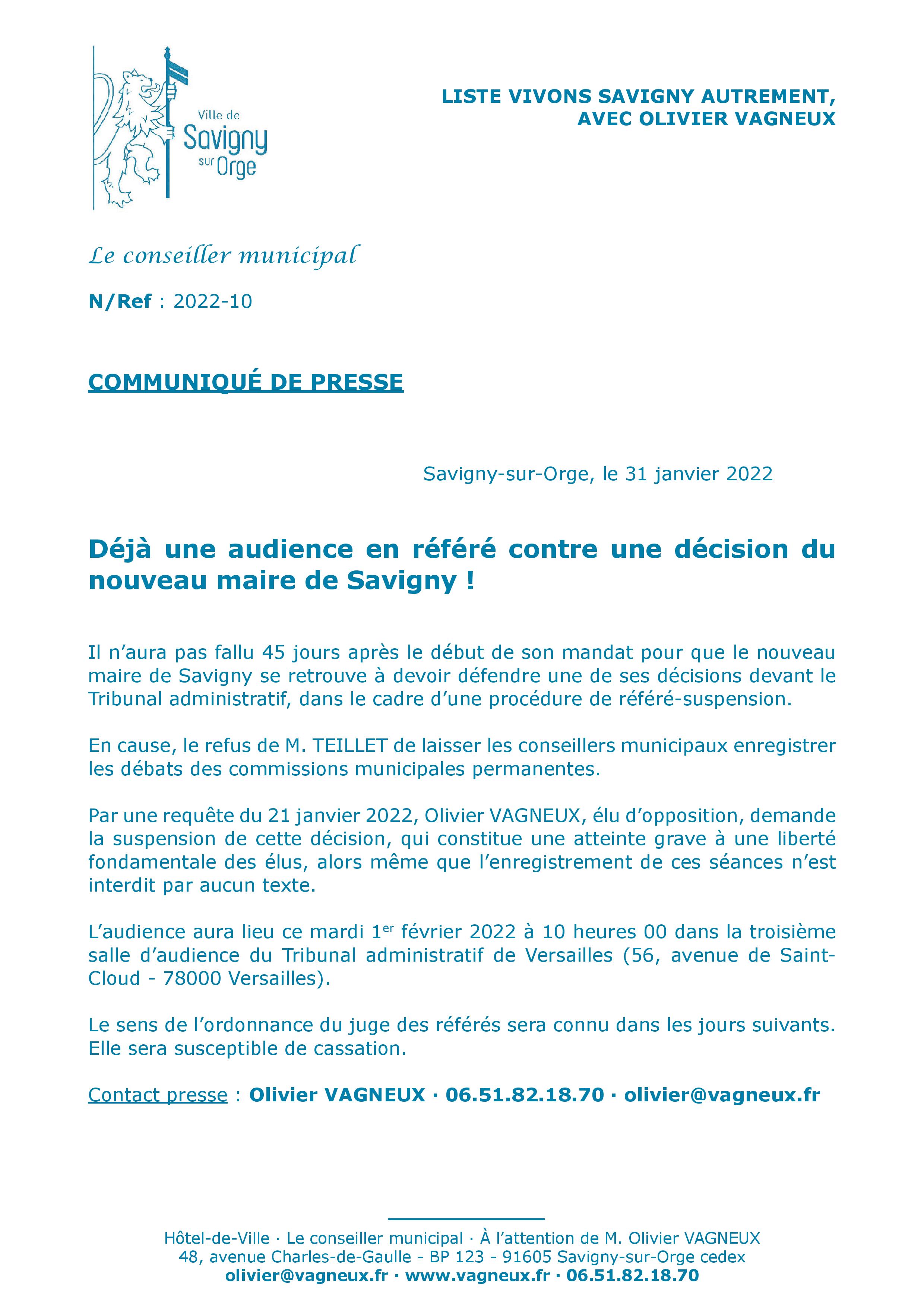 Communiqué de presse, sur du papier à en-tête de la Ville !