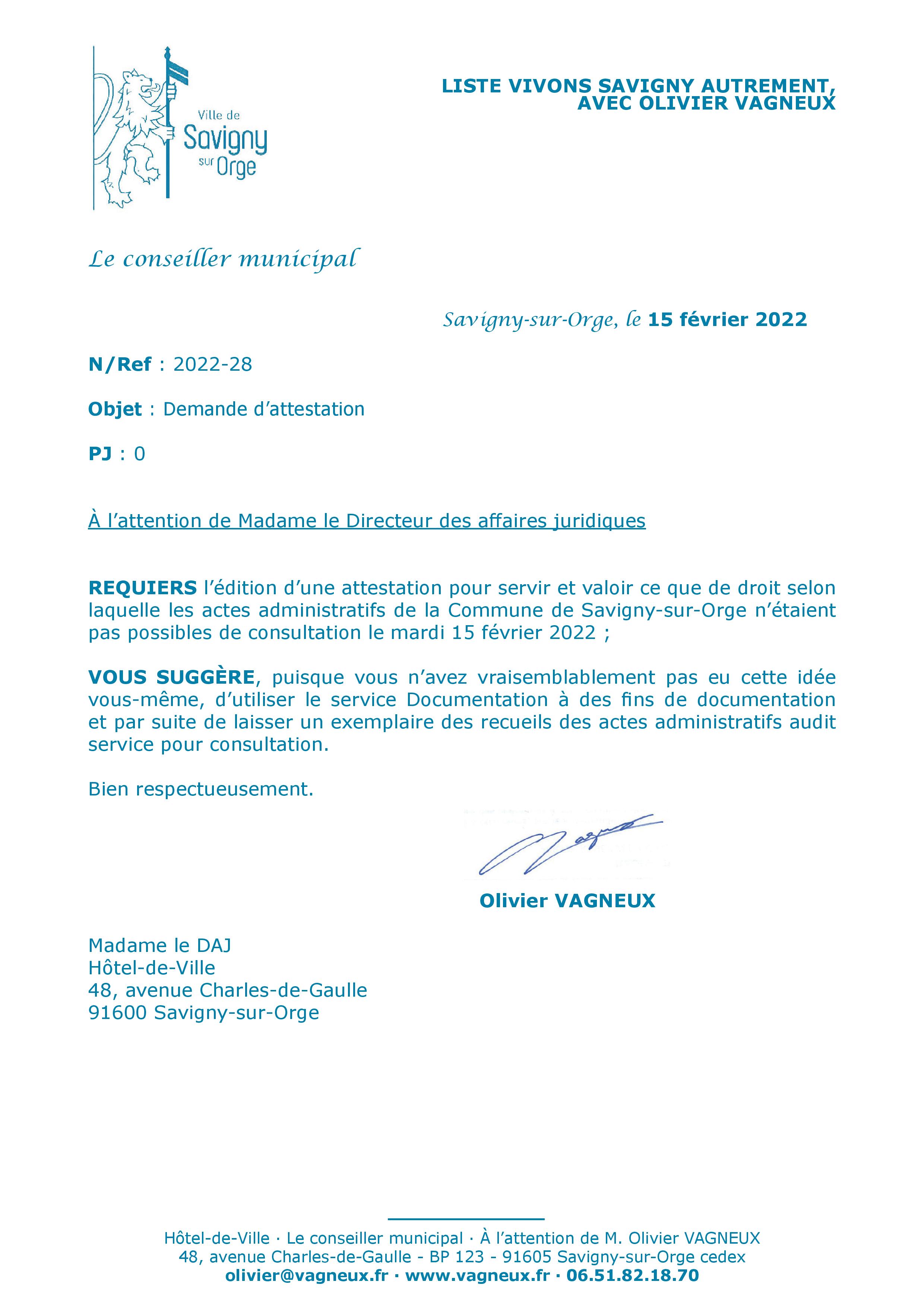 Donc je demande une attestation écrite à la dame, parce qu’elle m’a fait une attestation orale en réponse à me demande orale.
