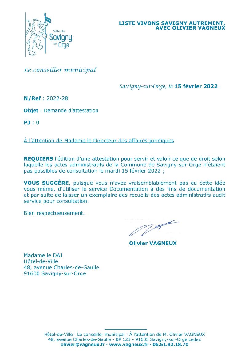 Et puis Sandra ALVES, la directrice des affaires juridiques, qui vient respectueusement me dire que les deux agents du secrétariat général sont en congés, donc que je ne pourrais pas consulter les actes administratifs aujourd’hui.