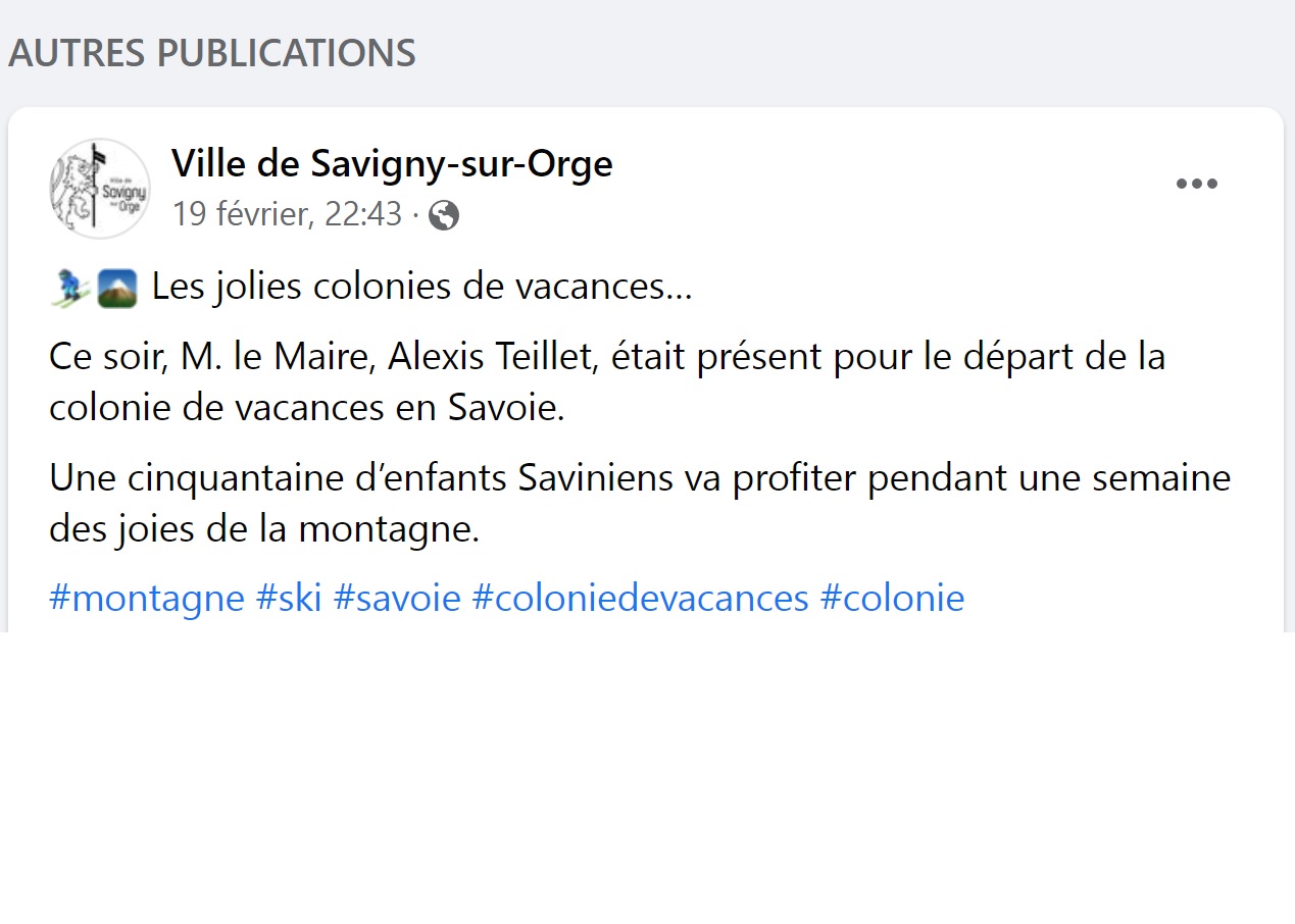 En fait, l’information importante selon cette publication Facebook ne serait pas qu’une cinquantaine d’enfants saviniens partent en colo, mais plutôt que TEILLET ait été présent à leur départ !