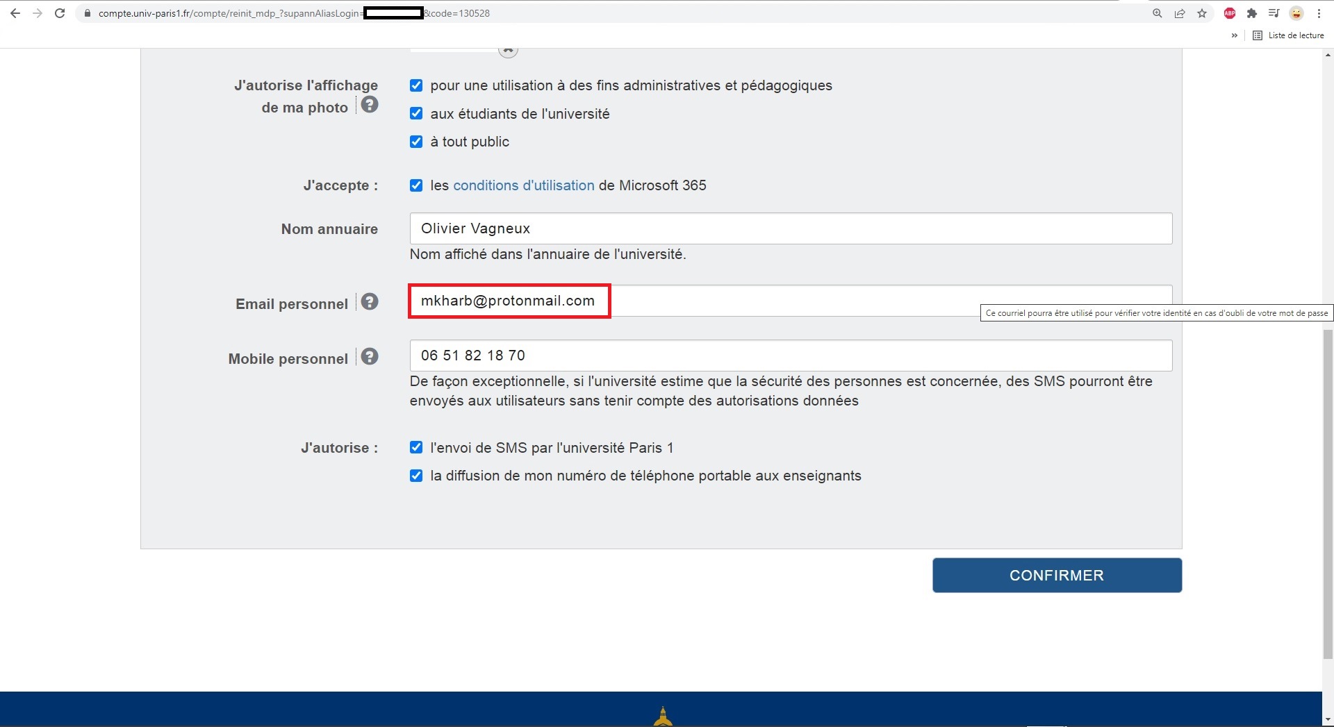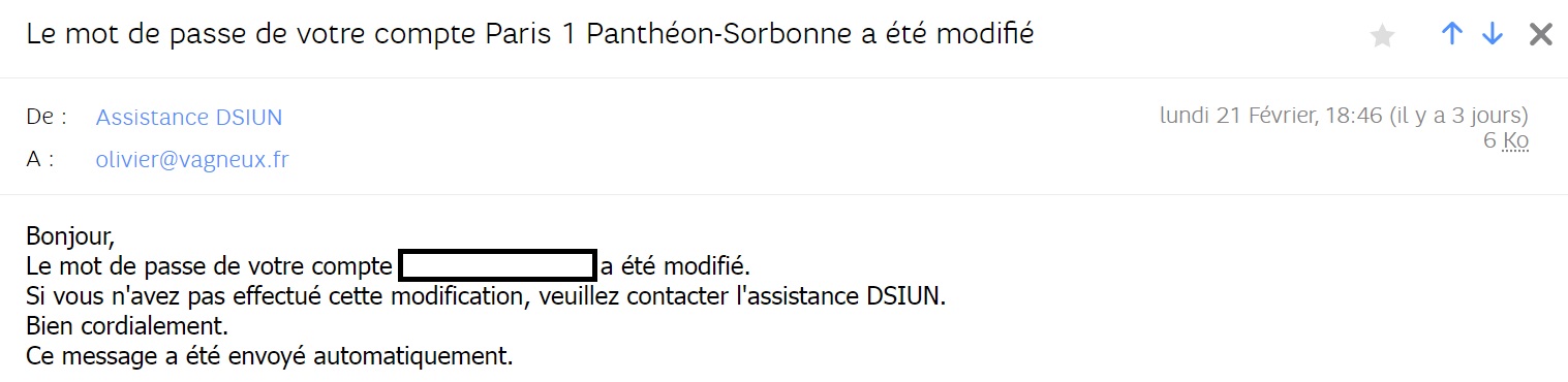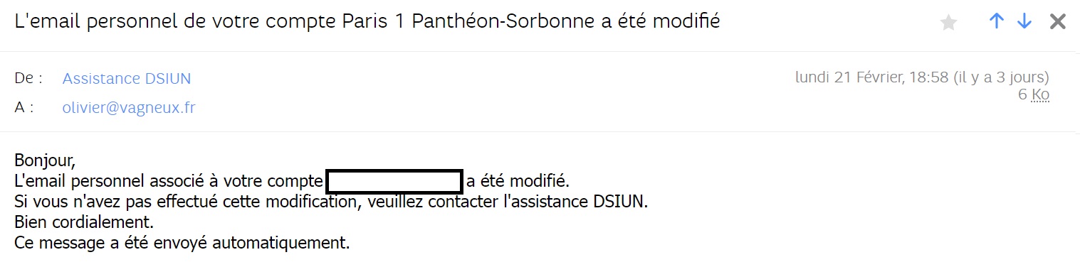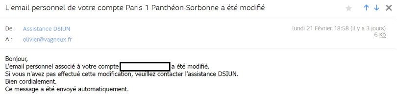 Heureusement avais-je donné « olivier@vagneux.fr » en courriel de secours, pour être informé !