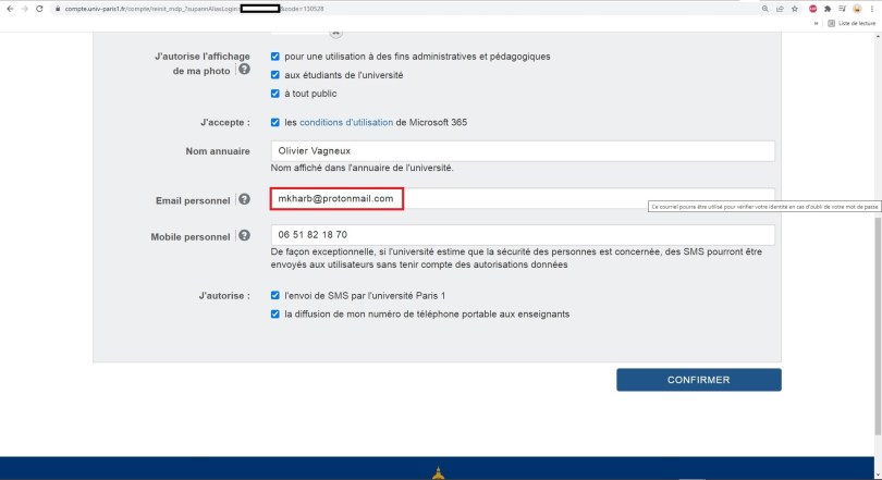 Là, appel pendant plus de 15 minutes de Monsieur le Responsable de la sécurité des systèmes d’information de Paris I, en personne, également Correspondant Informatique et libertés.