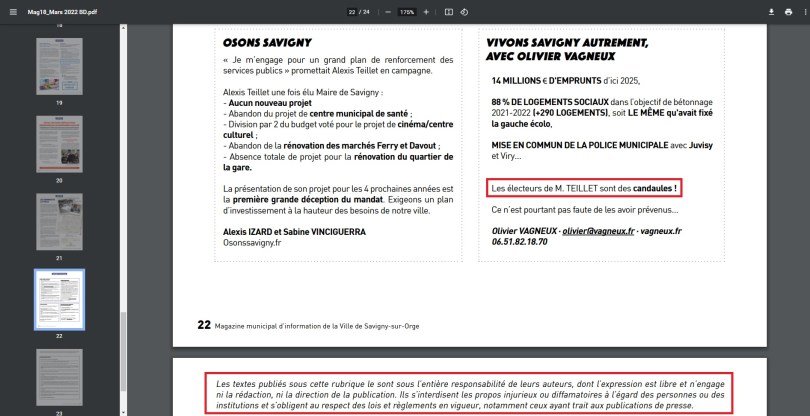 Sinon qu’Olivier VAGNEUX a écrit que les électeurs d’Alexis TEILLET sont des candaules.