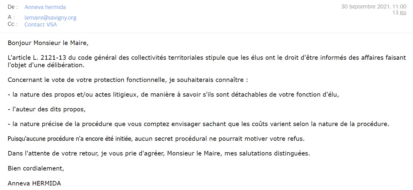 Si donc je peux vous aider en matière de protection fonctionnelle, faites jouer l’article L. 2121-13 du CGCT grâce à vos élus d’opposition.