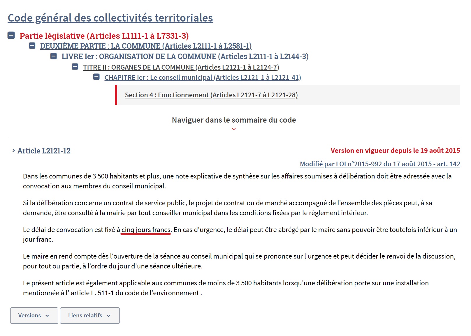 Il faut ensuite un minimum de cinq jours complets suivant l’envoi de la convocation pour que l’envoi soit valide (étant rappelé que le jour de réunion de l’assemblée délibérante ne comptant pas).