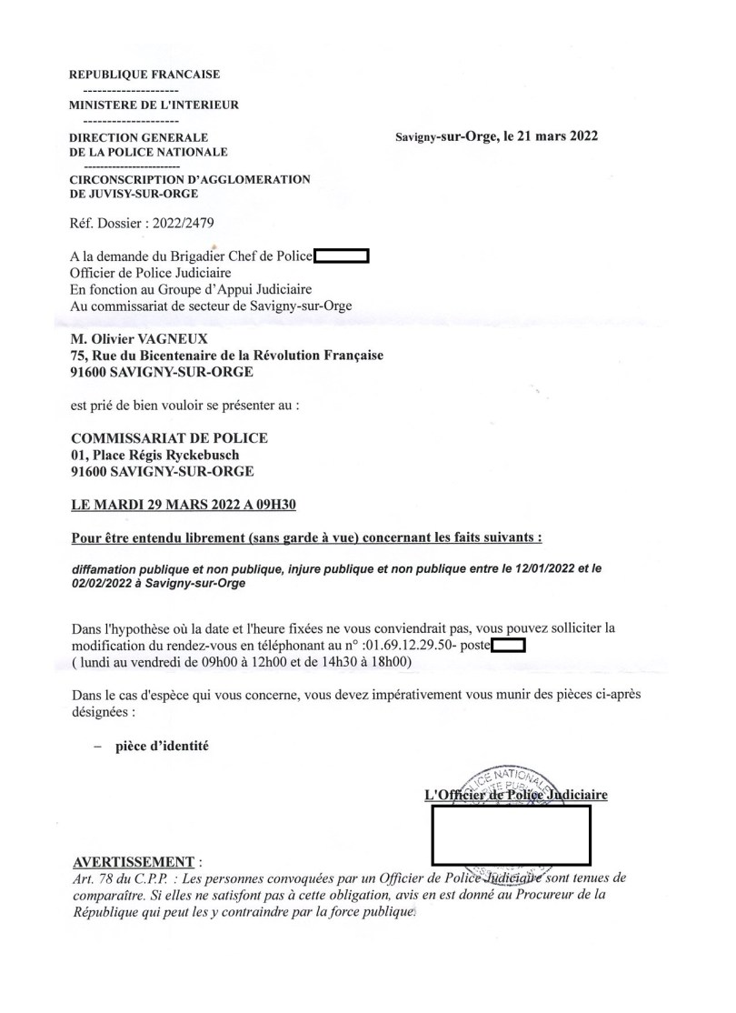 En février 2021, Olivier VAGNEUX a été relaxé des faits qui lui étaient reprochés.