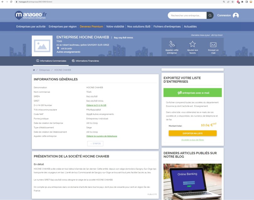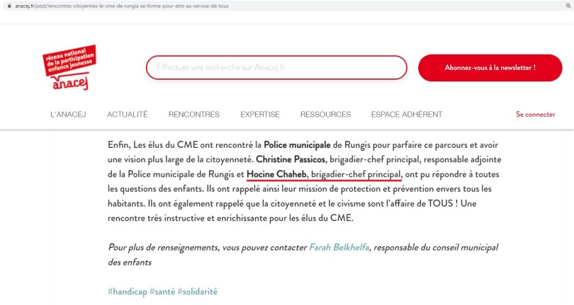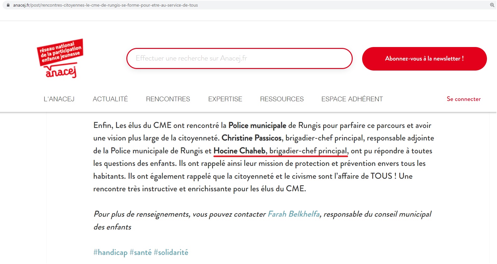 Car, je trouve sur internet, à la fois que M. CHAHEB est brigadier-chef principal de Police municipale à Rungis (Val-de-Marne) et en même temps qu’il est micro-entrepreneur, pour une activité de taxi.*