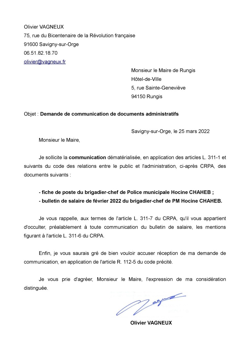 Et comme il ne le fera pas, je finirai, toujours le cas échéant, par le faire moi-même, en ma qualité d’autorité constituée de membre du Conseil municipal ! À suivre !