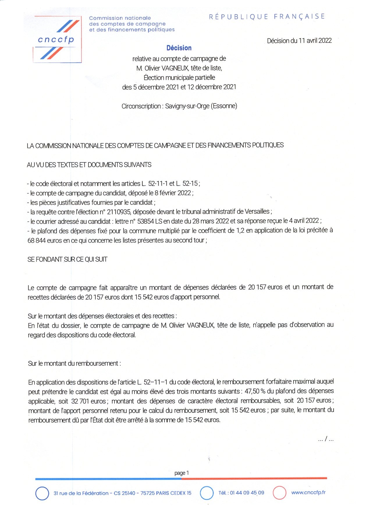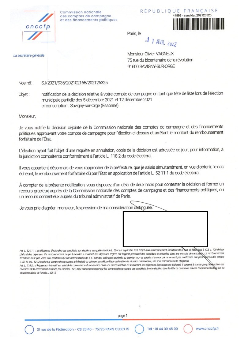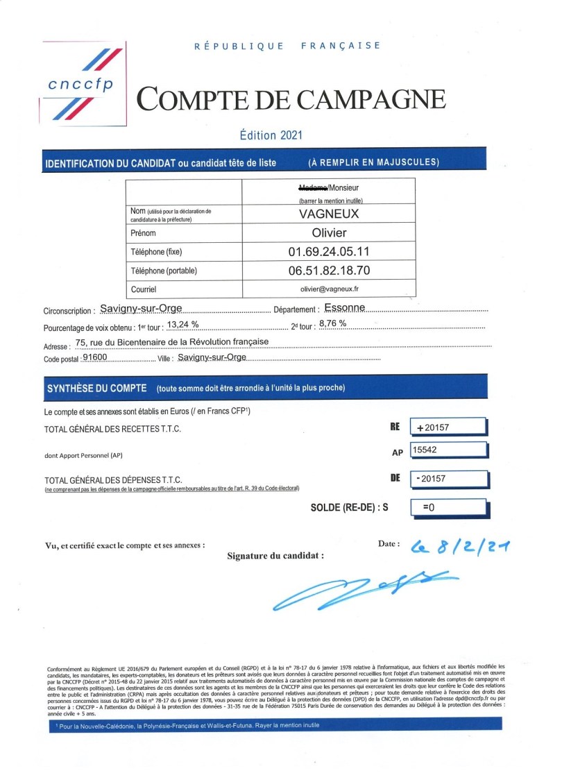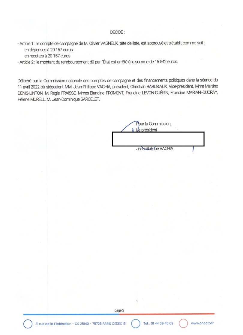 Aucune observation sur le compte de campagne de la part de la Commission !