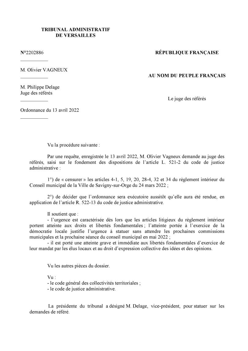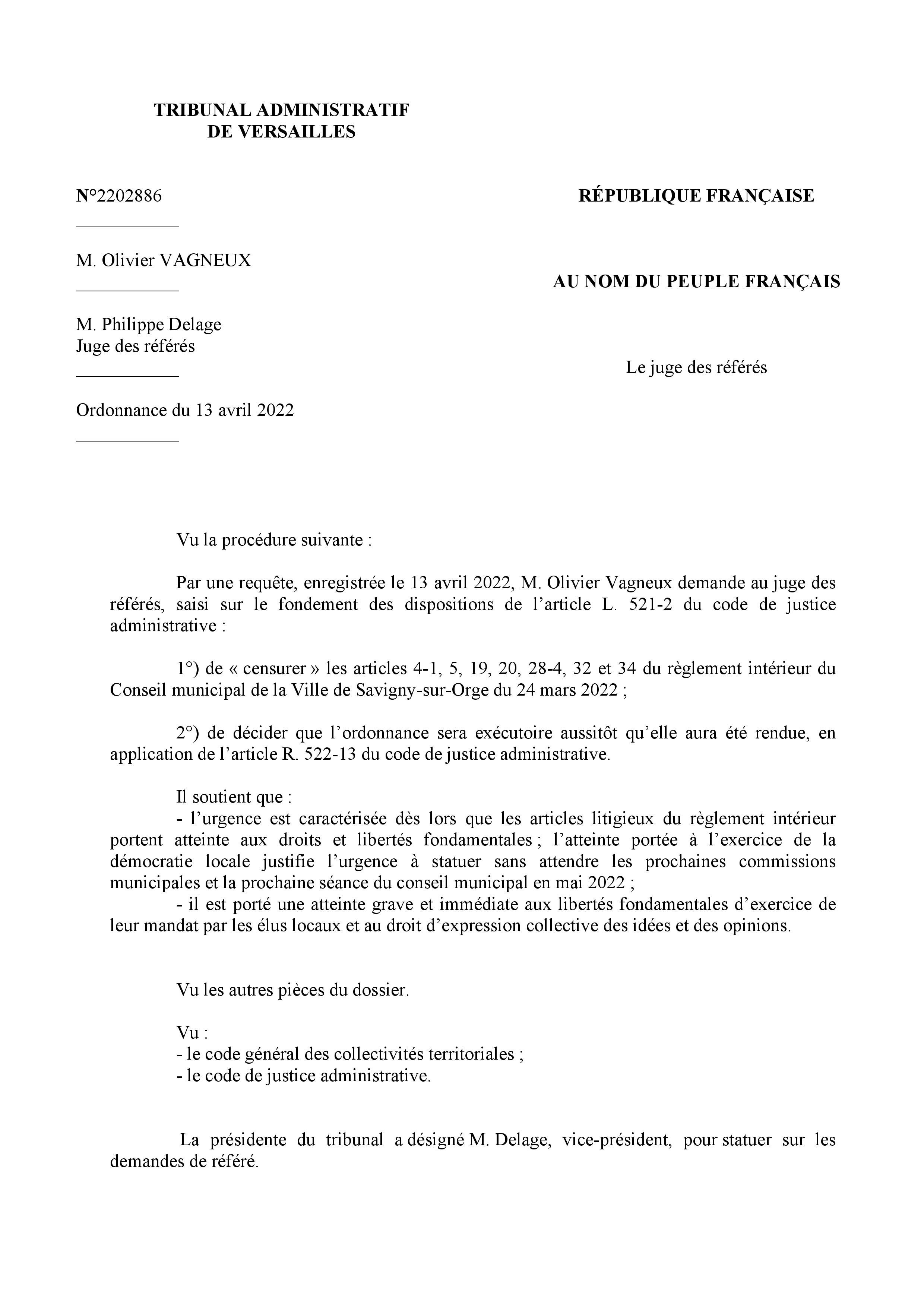 Je déposerai donc un recours en excès de pouvoir le mardi 19 avril 2022 contre divers articles du règlement, assorti d’un référé suspension, que je déposerai vraisemblablement le mercredi 20 avril 2022.