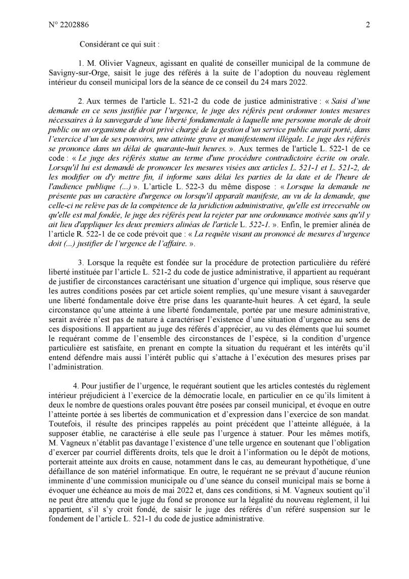 Etonnamment, le juge des référés ne semble pas tout à fait fermer cette voie, quand bien même il écarte tous mes moyens relatifs à l’idée de permanence de la démocratie pour justifier le défaut d’urgence.