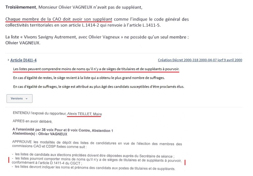 Et voilà que TEILLET vient triomphalement nous expliquer, alors qu’encore une fois personne ne lui demandait rien, pourquoi il a invalidé mon bulletin de vote à l’élection de la commission d’appel d’offres, soit selon lui, parce que je n’avais pas de suppléant !