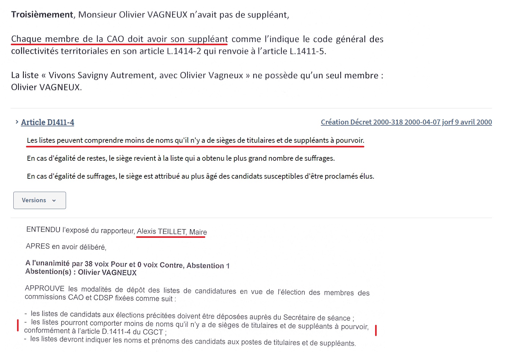 Et voilà que TEILLET vient triomphalement nous expliquer, alors qu’encore une fois personne ne lui demandait rien, pourquoi il a invalidé mon bulletin de vote à l’élection de la commission d’appel d’offres, soit selon lui, parce que je n’avais pas de suppléant !