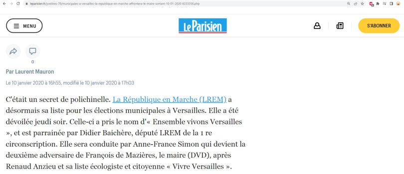 Fun fact : Jacques GÉRING était sur la liste La République en marche de Versailles à l’élection municipale de mars 2020 ! Ils sont vraiment cons chez LR. Aller chercher un macroniste, revenu opportunément à LR, pour remplacer un LR opportuniste parti chez MACRON… C’est blanc bonnet et bonnet blanc…