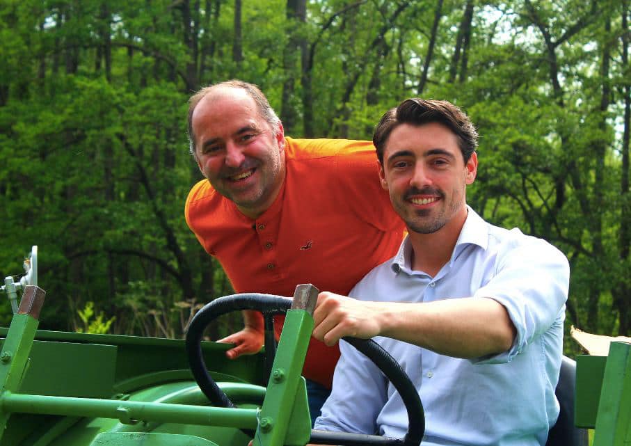Alexis sur son tracteur. Pou’ sû’, il est devenu un vrai ga’s de la 3e ci’co ! Vindiou ! Mildiou !
