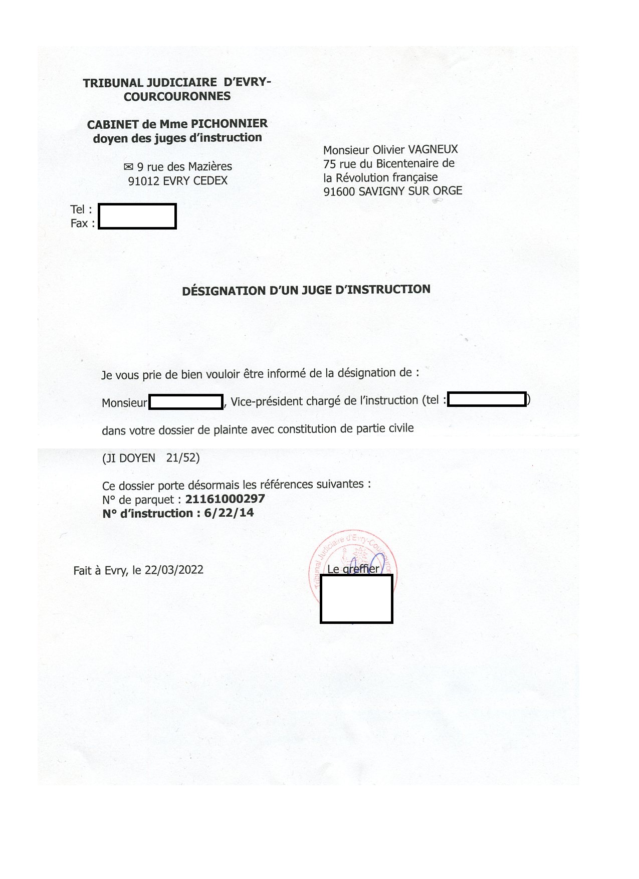 Rappelons que le Monsieur est coutumier du fait d’usurpation, lequel fait, fait d’ailleurs l’objet d’une information judiciaire ouverte le 22 mars 2022.
