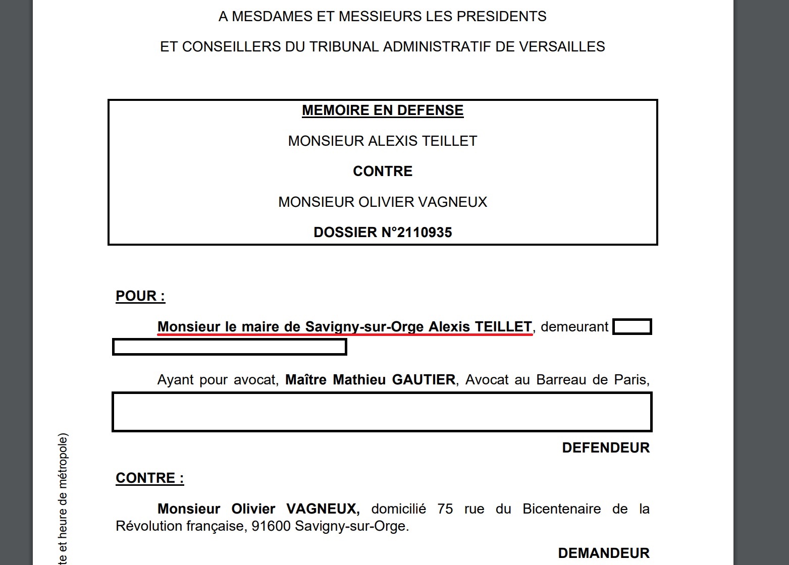 Et voilà qu’on a TEILLET qui se ramène sur ma protestation… En qualité de « maire de Savigny-sur-Orge ».