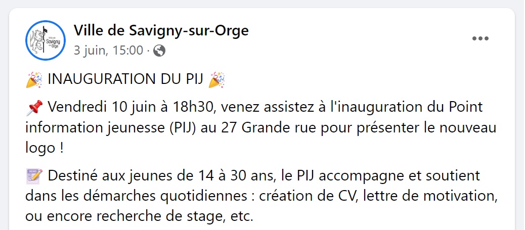C’est sur cette question que je vous laisse, il faut que je m’incruste, puisque je n’y ai pas été invité, à l’inauguration du Point information jeunesse par notre maire Robin REDA. Oui, vous avez bien lu.