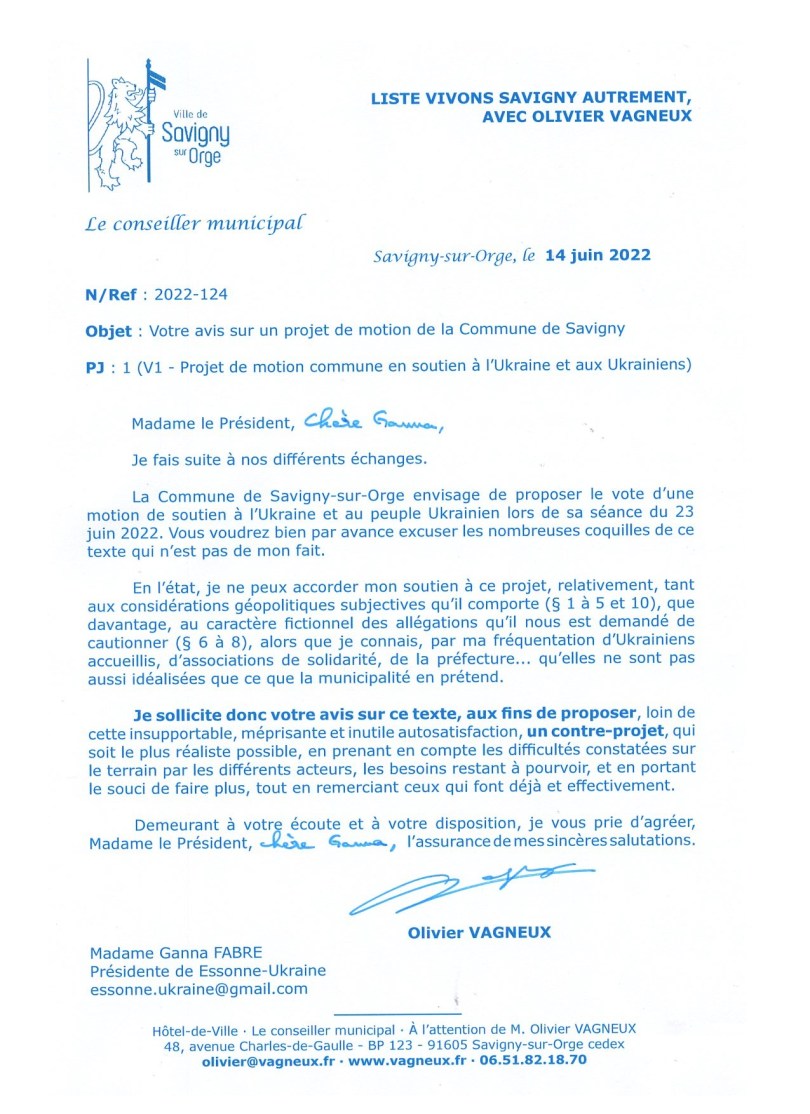 La Commune fait la belle, parce qu’il y a 5 enfants ukrainiens scolarisés à Savigny. Je pense qu’elle aurait un tout autre discours s’il y en avait 400, et qu’il lui était demandé un engagement beaucoup plus fort.
