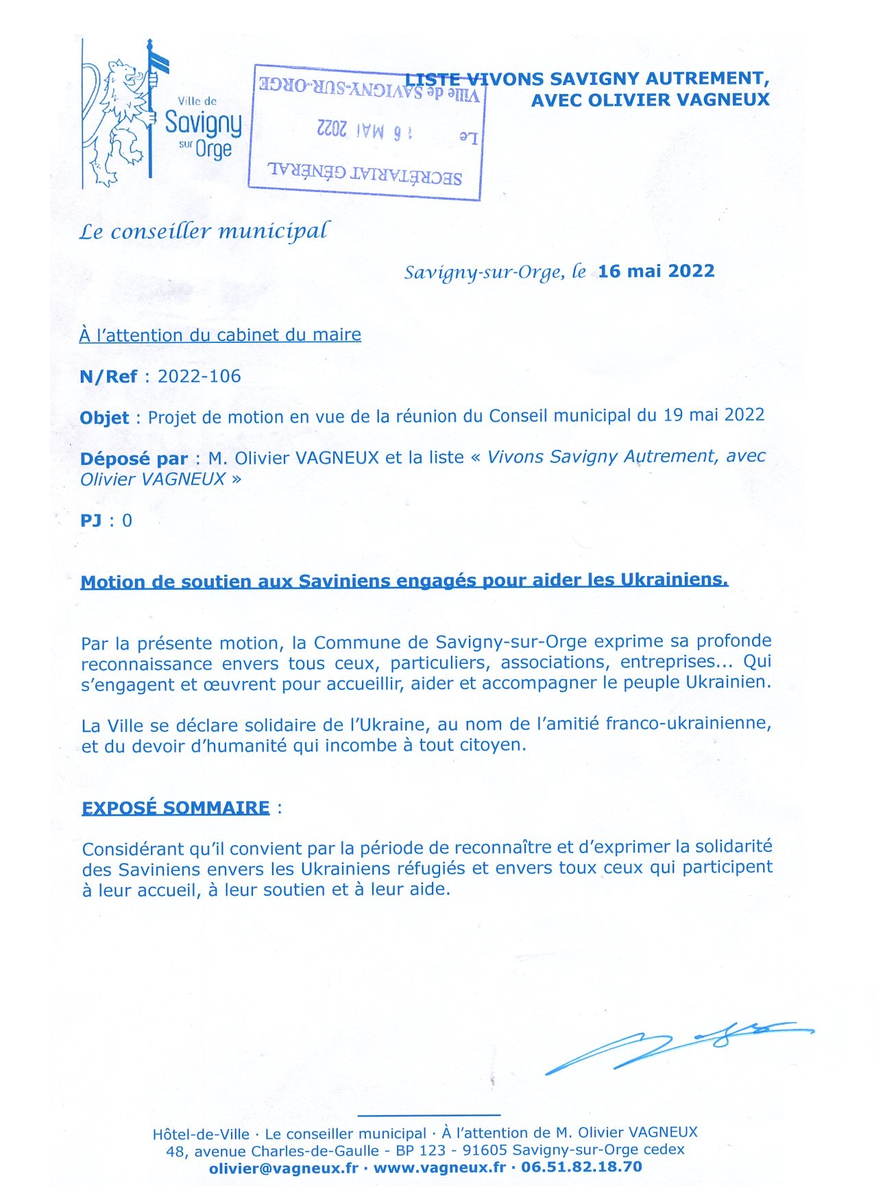 Sur ce, je propose aux associations et aux Saviniens aidants et accueillants, de m’aider à écrire un contre-projet de motion.