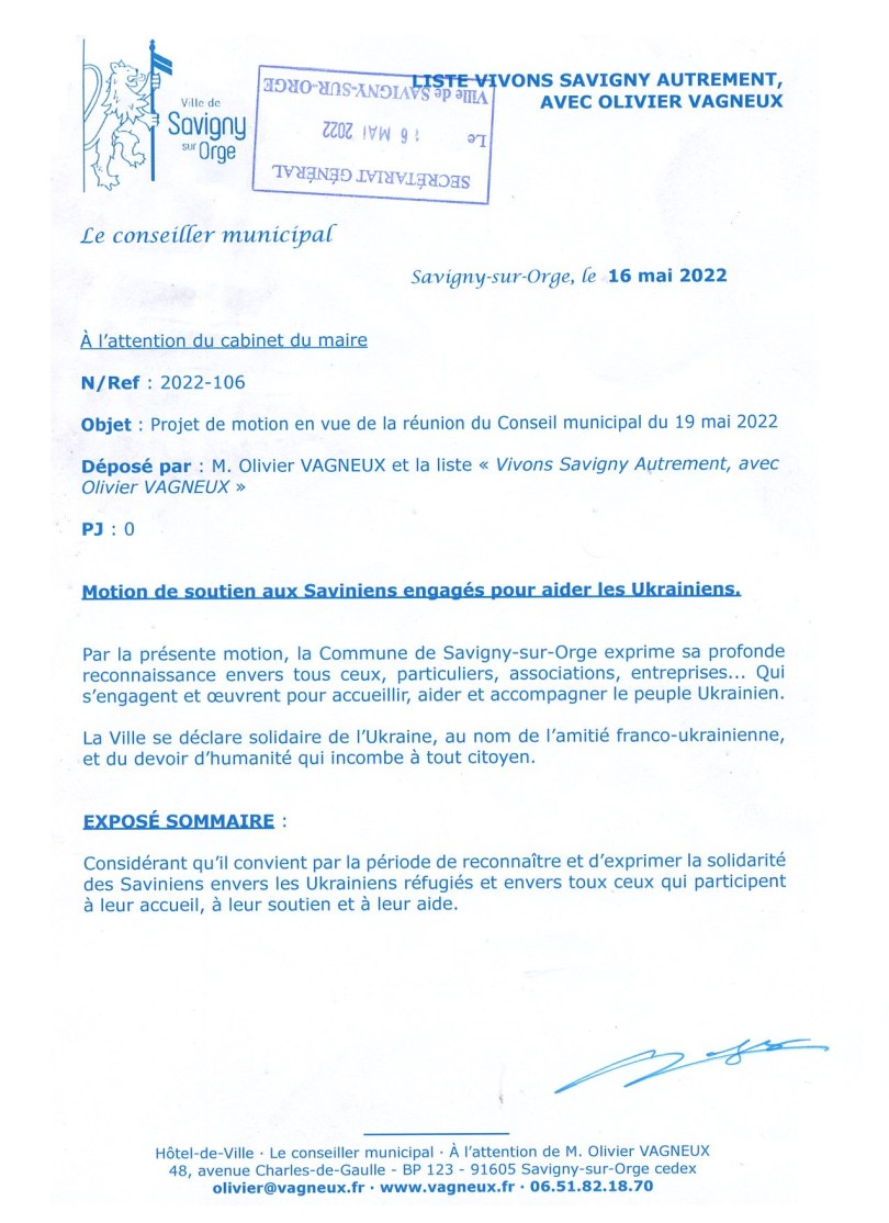 C’est le sens des courriers que j’ai envoyé ce jour à plusieurs acteurs sincères de l’accueil des Ukrainiens.
