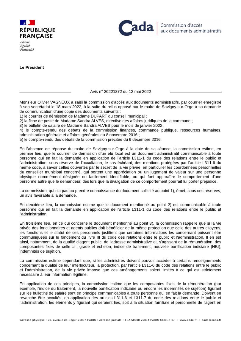 Le maire fait une connerie, en refusant de me communiquer les documents demandés. Ce n’est pas tant moi qui vous le dit, que vous me croyez ou pas, que désormais la Commission d’accès aux documents administratifs (CADA).